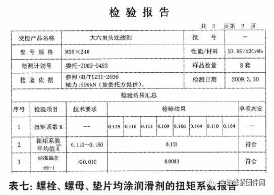 用户接到报告后,认为扭矩系数偏大,不符合他们企业的标准——扭矩系数≤0. 13。(湖南湘电客户)