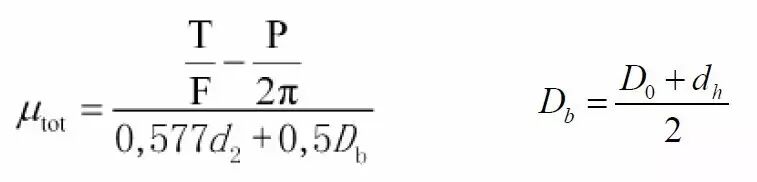 总摩擦系数仅用于比较各种不同摩擦条件下的螺栓连接副摩擦系数的状况,总摩擦系数的简化公式是由假定螺纹摩擦系数与支承面摩擦系数相同为前提条件所确定的。