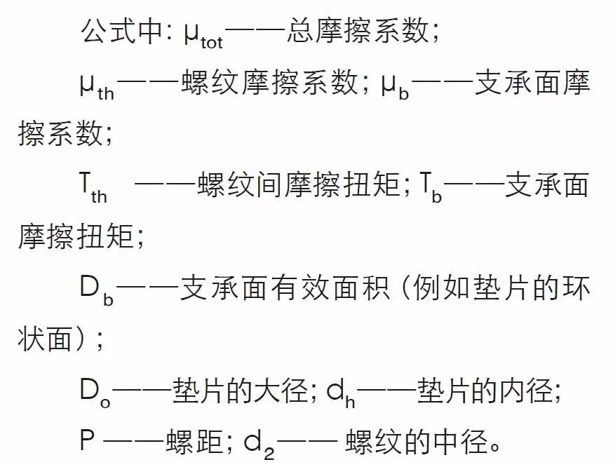 (1)总摩擦系数与支承面摩擦系数、螺纹摩擦系数有数学公式关系,可以进行具体的计算: